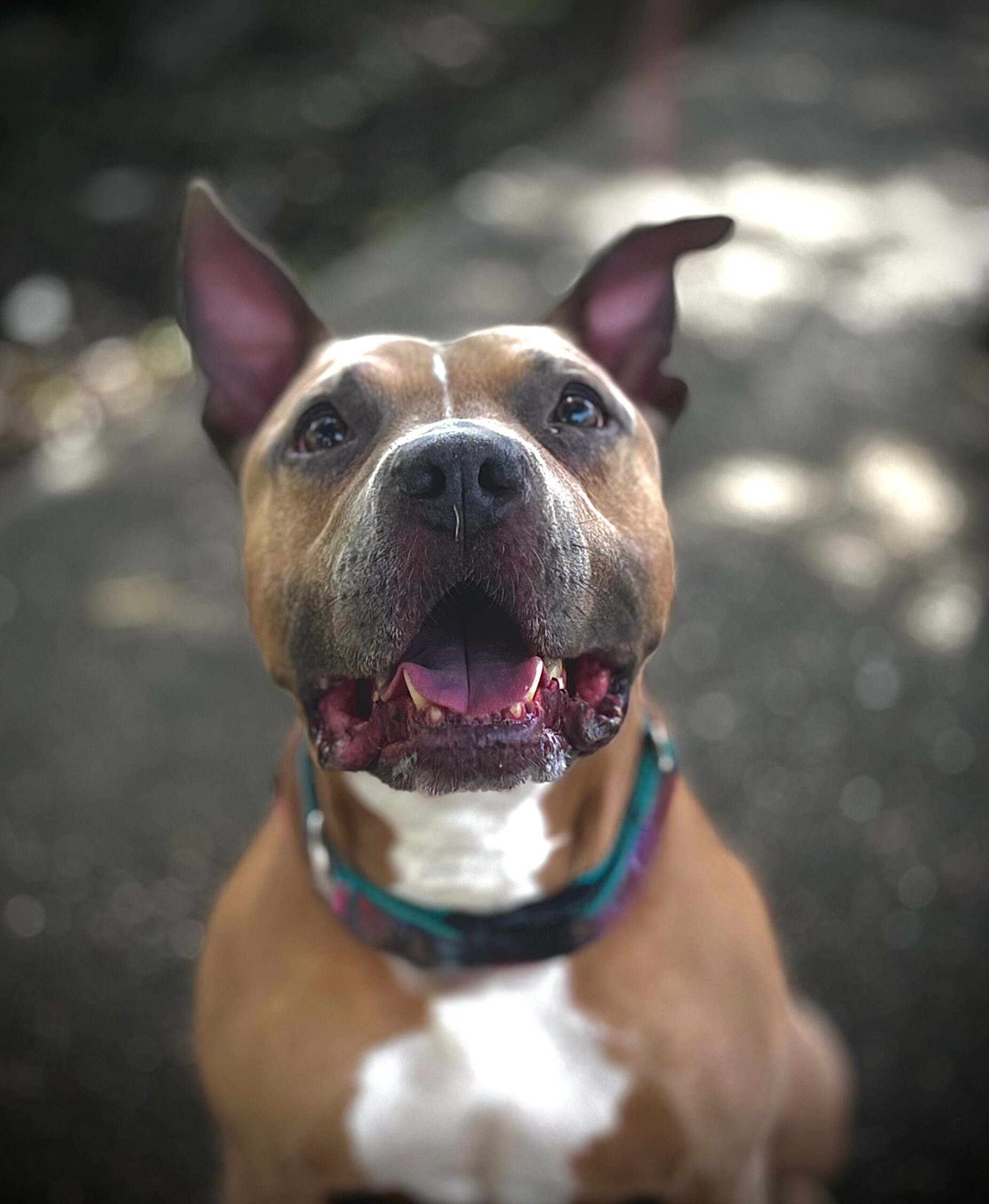 At 7.5 years young, Peeve is what we lovingly call a pocket pittie β smaller in size but overflowing with BIG love. π