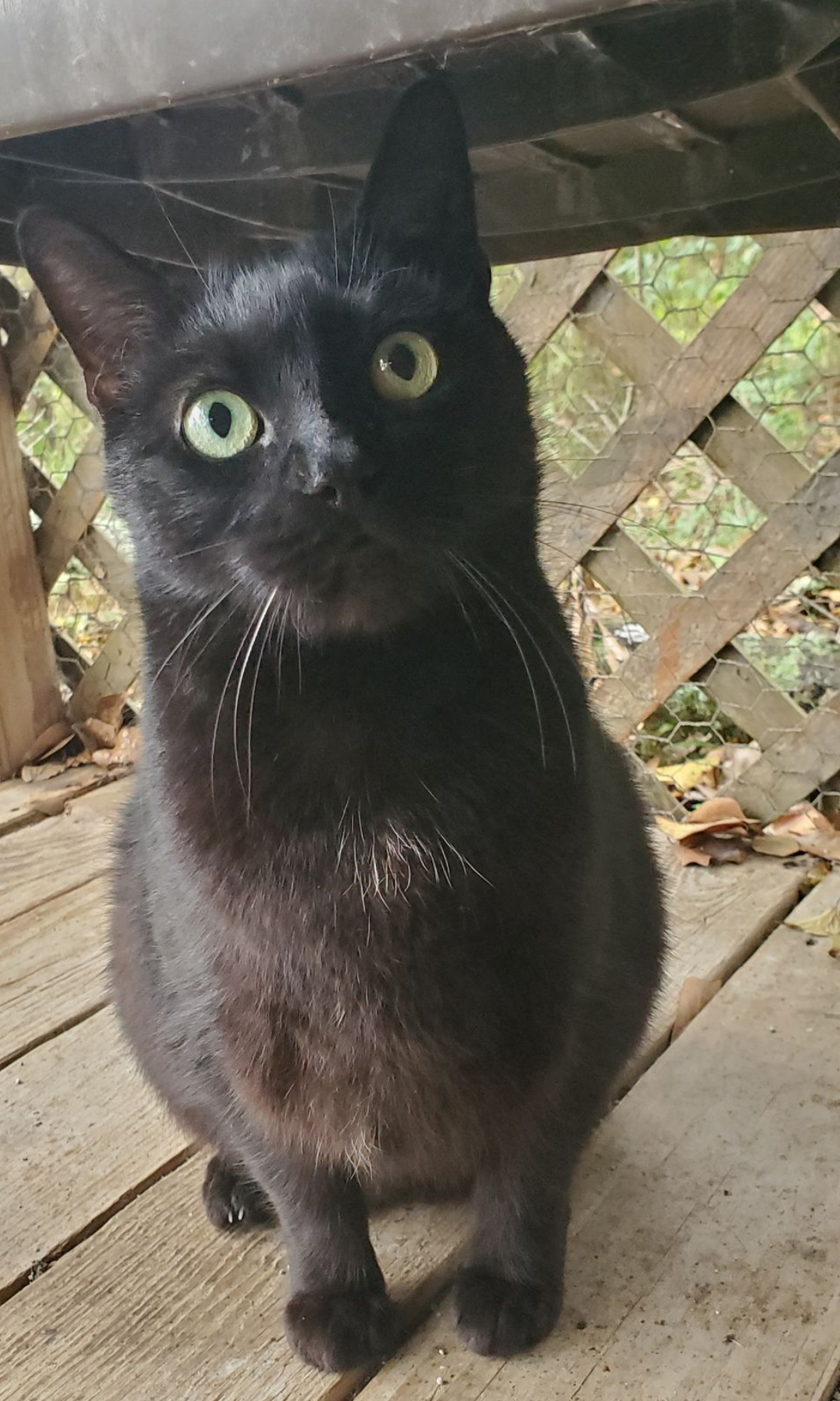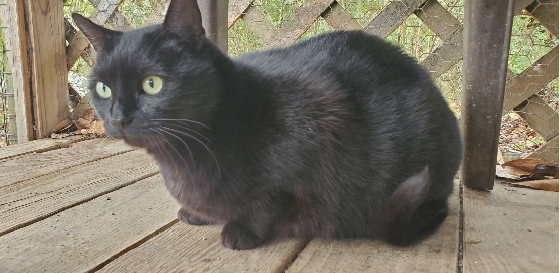 Spooky is now 13 years old. She is the queen bee and a Queen B. Spooky rules our nursery building, and bosses everyone around, including her staff. She demands little from her servants, food, water, and for them to not touch her unless she request it. Spooky is not aggressive, shy, or feral, she just enjoys her space, and I think she enjoys swatting at people or other cats. She puts on a tough facade, but she really does like people and other cats. She will let you pet her and will even jump in your lap. Spooky’s favorite thing is food, she will do anything for a treat.