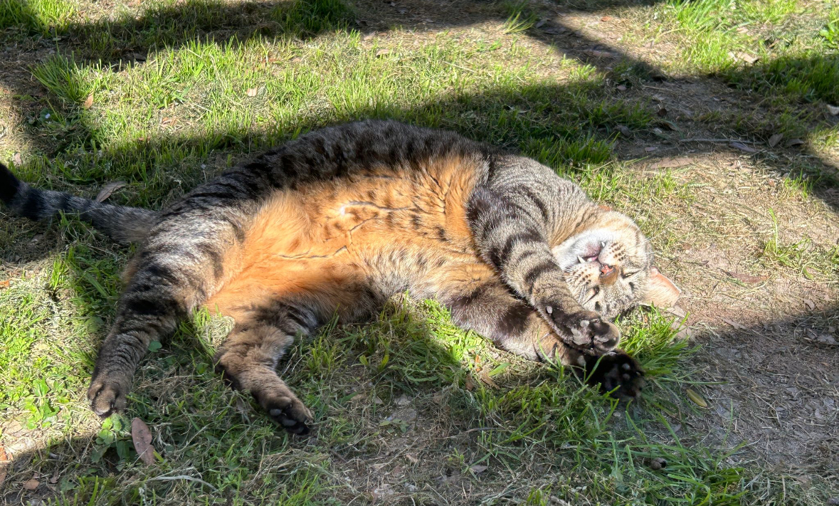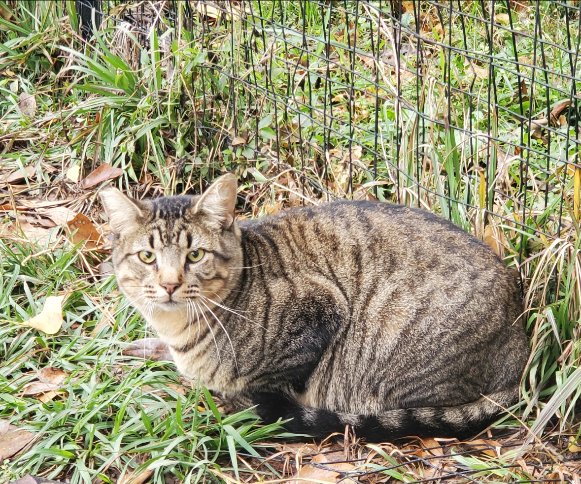 Trap is now a lazy 5 year old tabby who is always outside soaking up the sun, unless the weather is bad. When he wants human affection, he is very demanding about it.