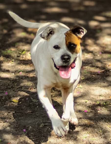 At almost 9 years old, 1010 is still bursting with energy and joy. This beautiful Boxer/Pit mix loves car rides, swimming in the pond, and playing with her favorite toys. She’s the perfect balance of adventure and affection—ready to snuggle on the couch or join you on that hike you’ve been putting off.