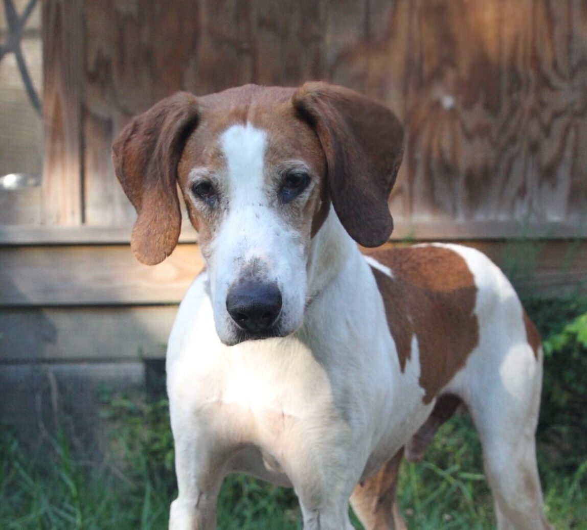 This sad eyed Hound was brought to us thru a local animal shelter here in Louisiana.  Bearing the markings of a hunting dog,  he must’ve been kept very isolated in the woods because he is deathly afraid of everyone.  At this time, the only person he will interact with is our founder, Tia Torres who he currently lives with.  Sadly we do not think he will ever be able to be adopted as he is a “Hound in Wolf’s clothing”…..shy and very un-trusting but very sweet and gentle.