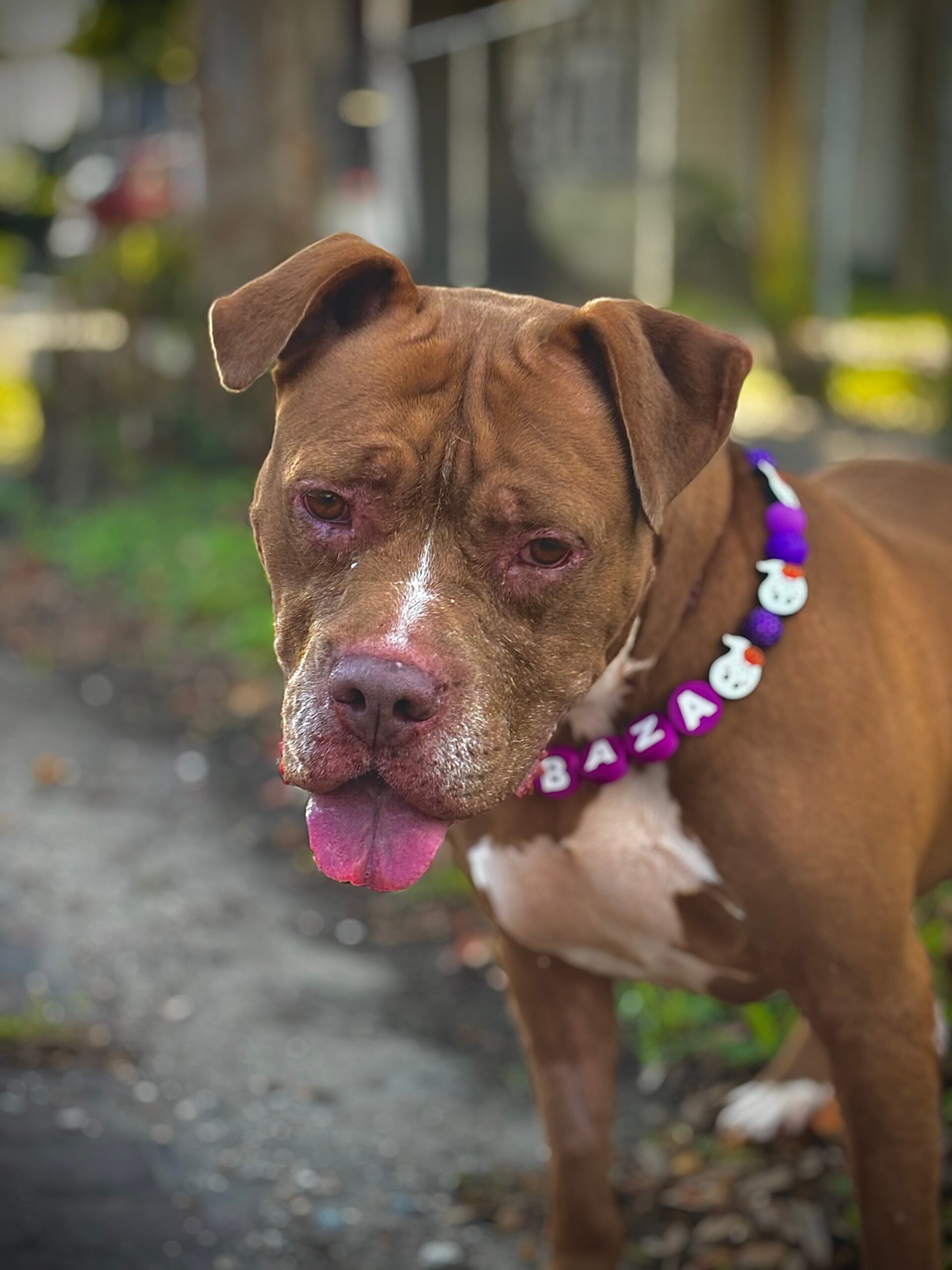 Her journey hasn’t been easy. She arrived coughing, struggling to stand, and nursing an injured leg and hip. A vet visit confirmed she was heartworm positive, but with treatment and care, her body has slowly recovered.