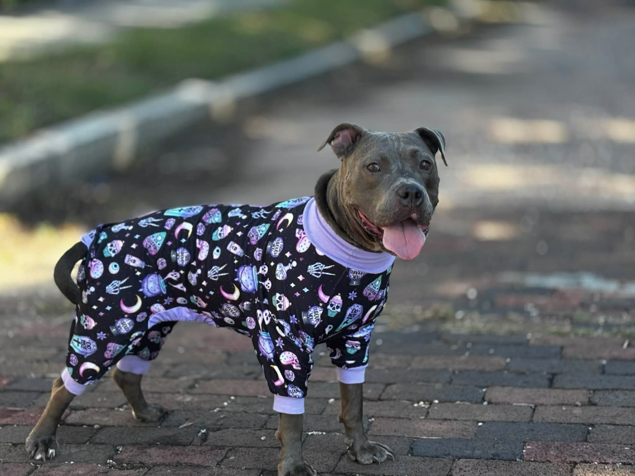 Juneberry came to us in heartbreaking condition. Her body was covered head to toe in one of the worst skin infections our vet had ever seen. Her skin was raw, inflamed, painful. And she wasn’t alone. She had been abandoned with her three emaciated puppies, trying to keep them alive while her own body was failing her.