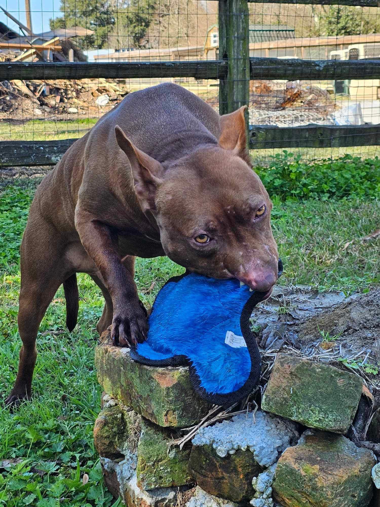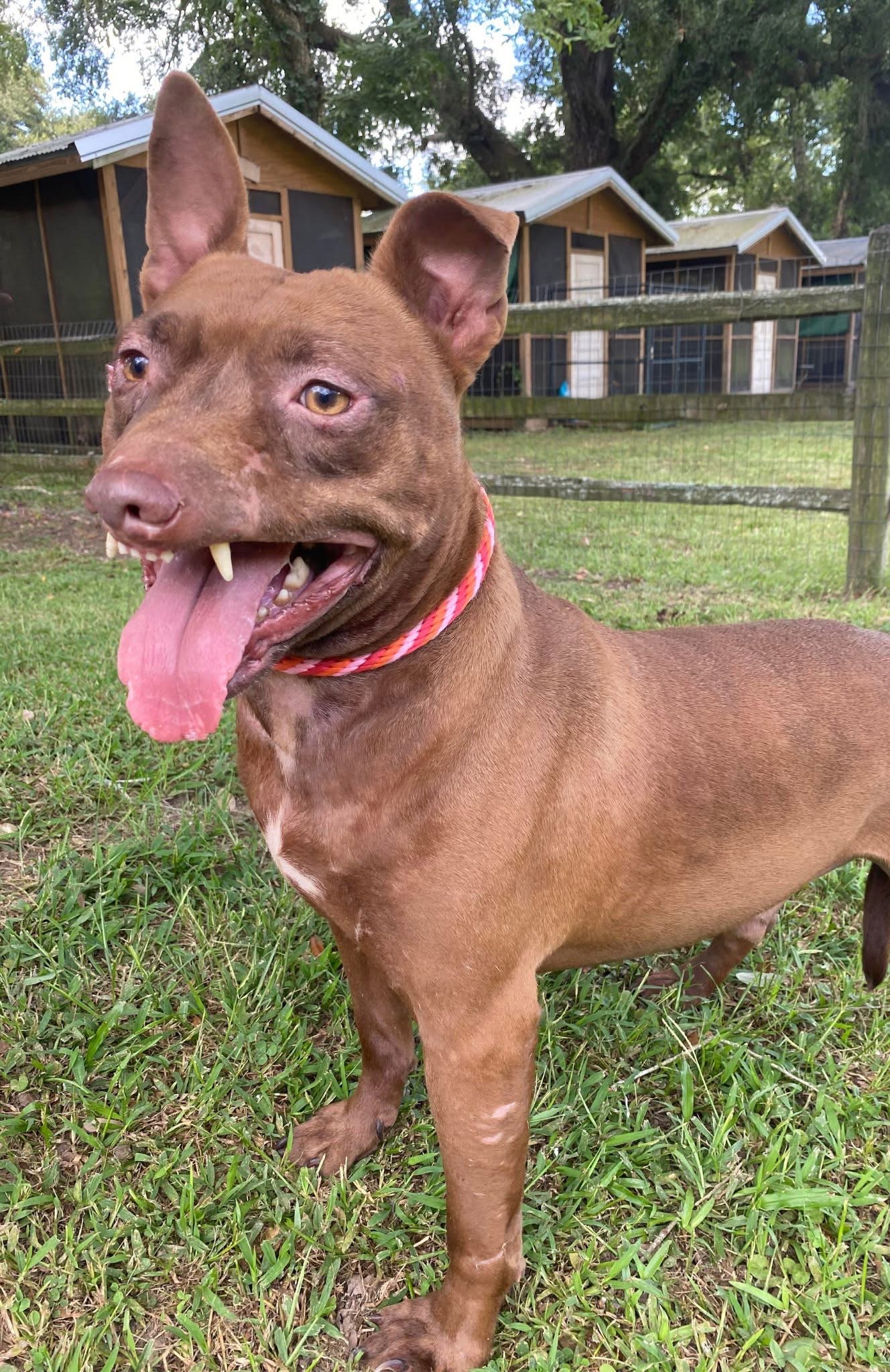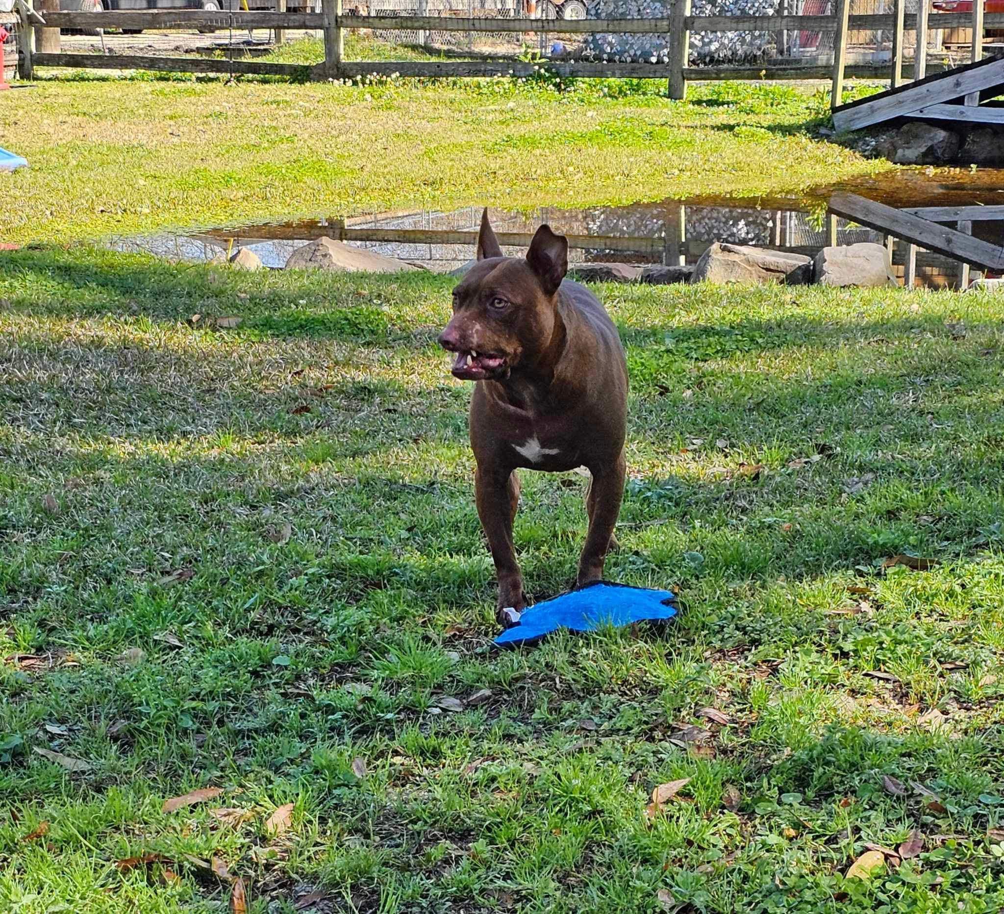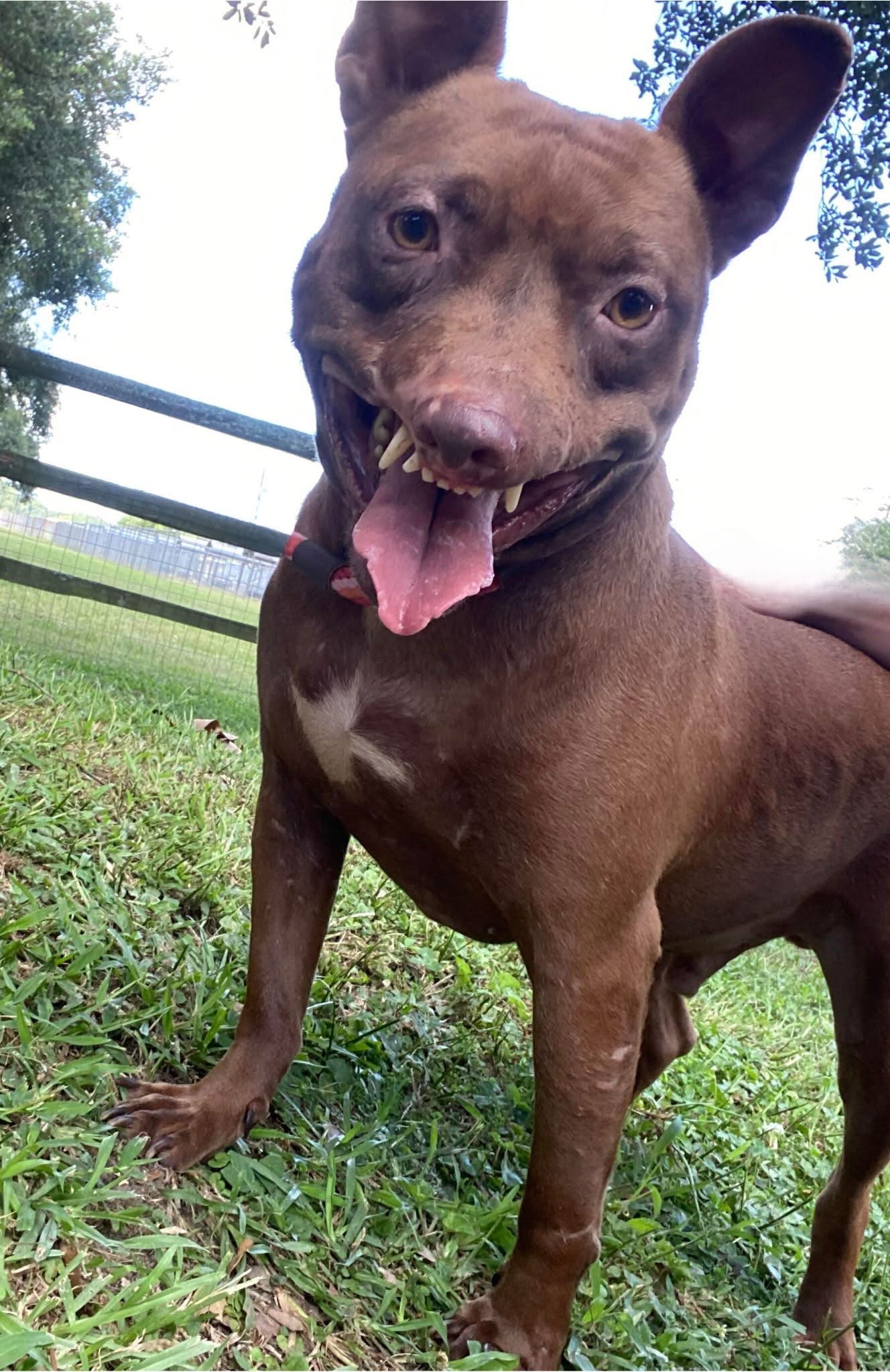 His muzzle/lips have been ripped off which leaves him with a permanent “smile” and while we think it’s endearing, at a glance, most think he is “snarling.” If you only knew….he is a complete mush.