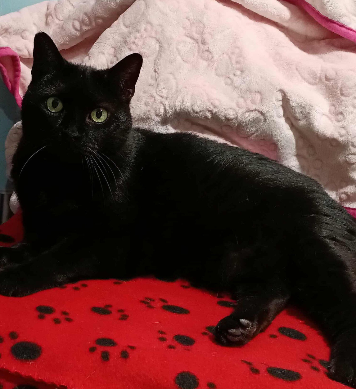 Spooky is now 13 years old. She is the queen bee and a Queen B. Spooky rules our nursery building, and bosses everyone around, including her staff. She demands little from her servants, food, water, and for them to not touch her unless she request it. Spooky is not aggressive, shy, or feral, she just enjoys her space, and I think she enjoys swatting at people or other cats. She puts on a tough facade, but she really does like people and other cats. She will let you pet her and will even jump in your lap. Spooky’s favorite thing is food, she will do anything for a treat.