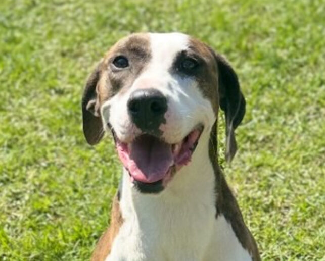 Ain’t he the cutest!? The cutie patootey is a part of our Underdogs Prison Dogs Program. And that means he has learned all kinds of really cool stuff! From what we can figure out, Olaf is a “Peagle” aka Pit …